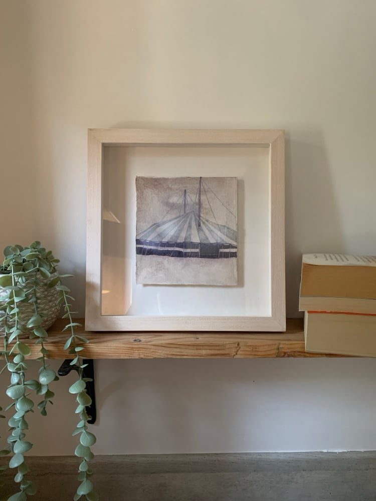 This drawing is framed in a limewashed frame with a floating mount as in the second photo